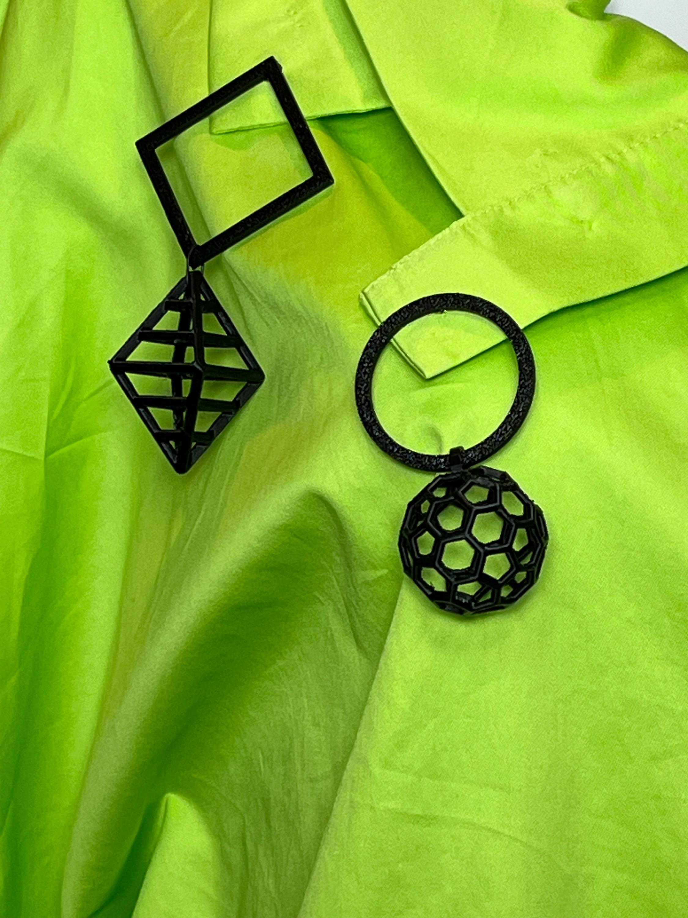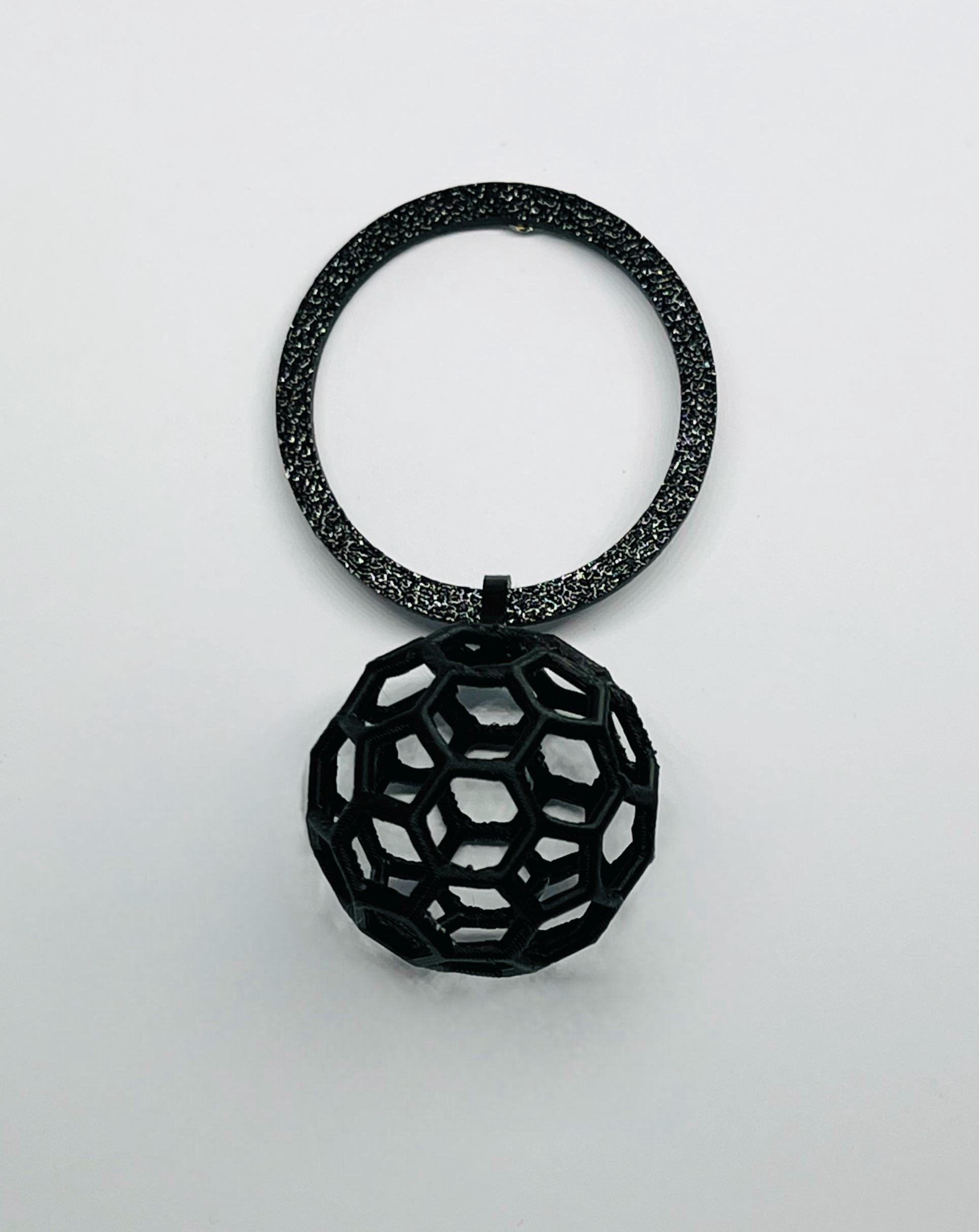3D printed hanging sphere pin. Available in black or white.