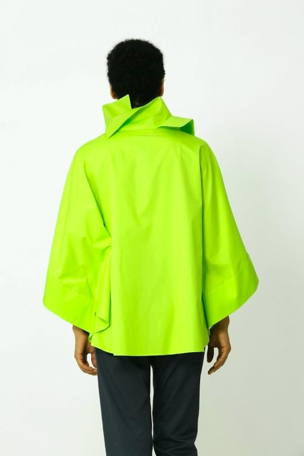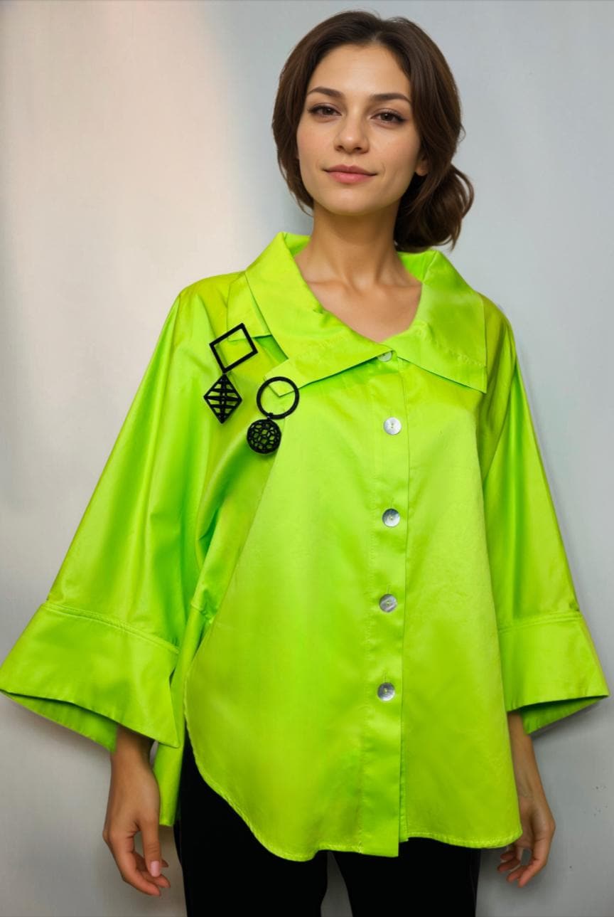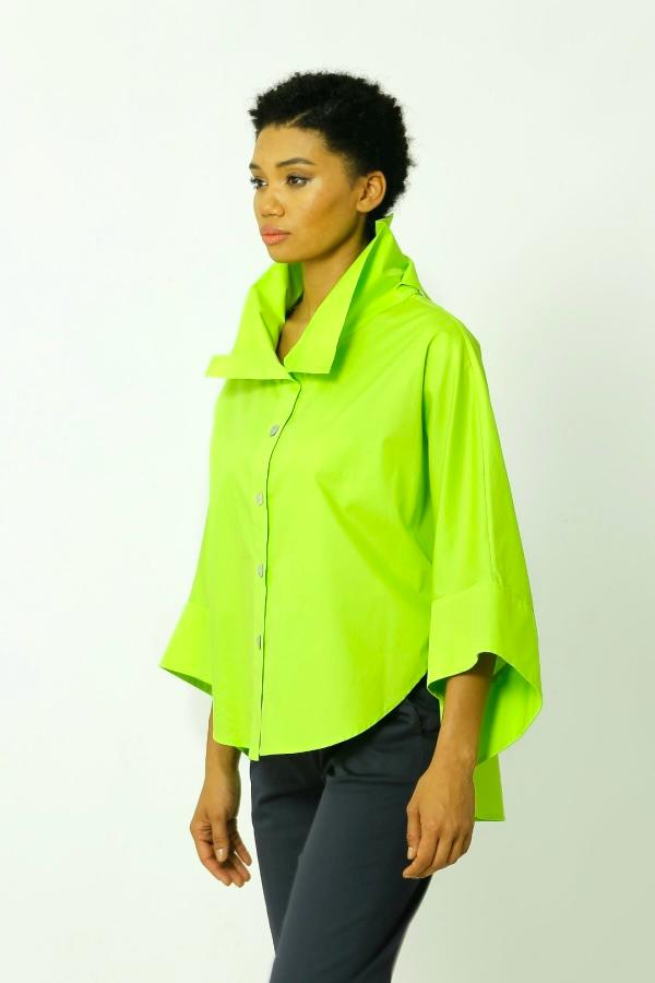 Lime green or white loosing-fitting 2-collar blouse. BLOUSE ONLY.